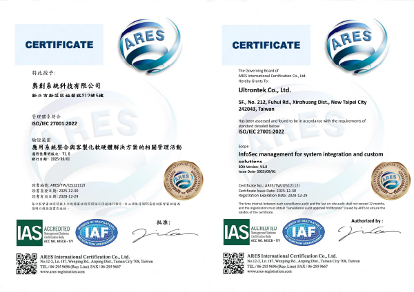 Ultrontek ISO/IEC 27001:2022 Certificate